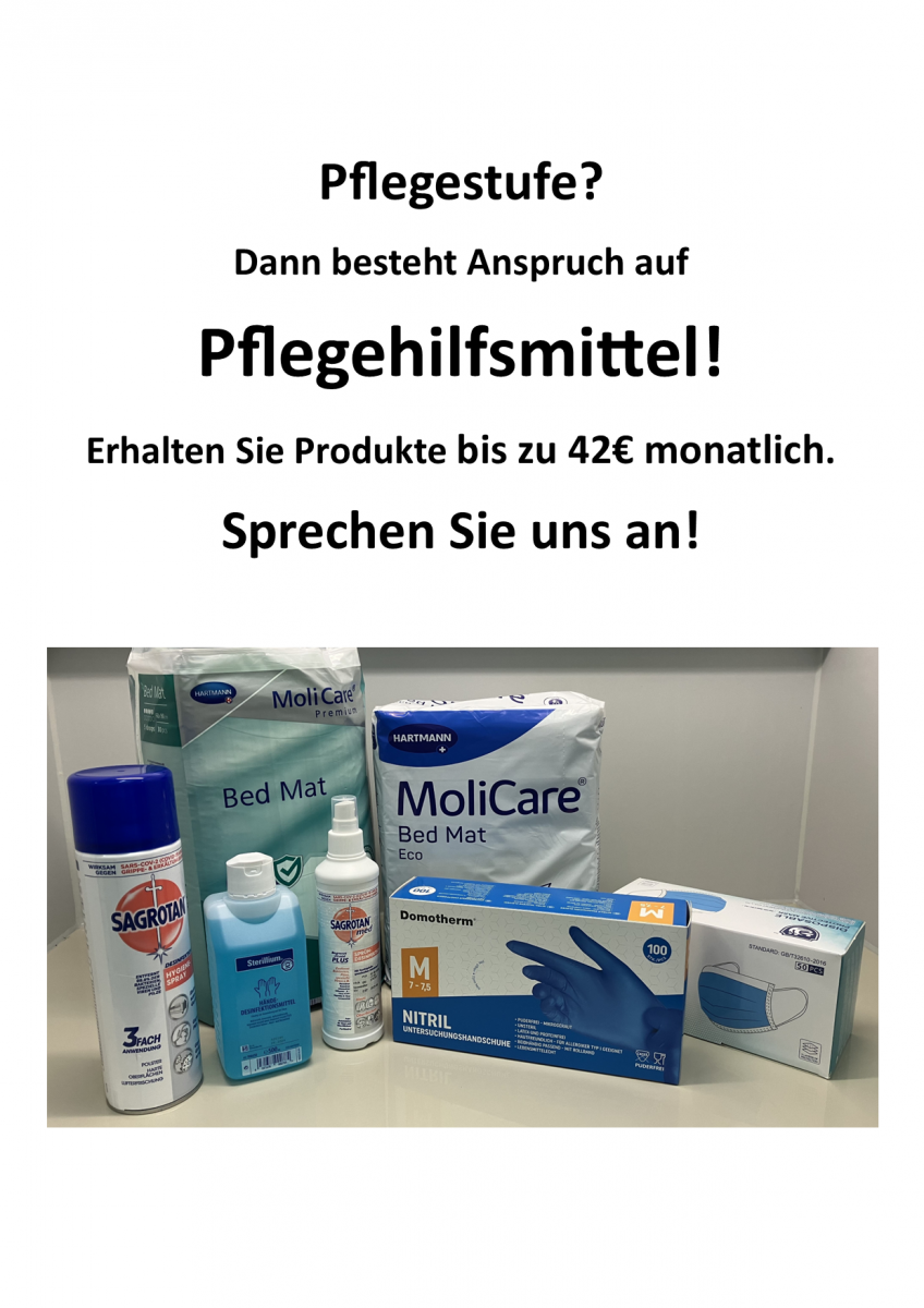 Bei vorliegendem Pflegegrad besteht in vielen Fällen ein gesetzlicher Anspruch auf Pflegehilfsmittel zum Verbrauch. Dazu zählen unter anderem Produkte wie Einmalhandschuhe, Desinfektionsmittel, Bettschutzeinlagen oder Mundschutz.